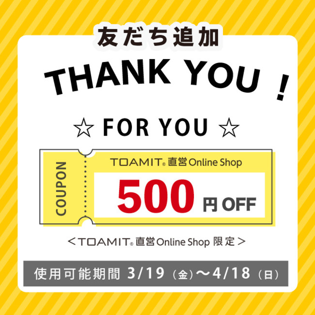 東亜産業オンライン事業推進本部公式LINE誕生!友だち追加で【¥500円OFF】クーポンプレゼント!